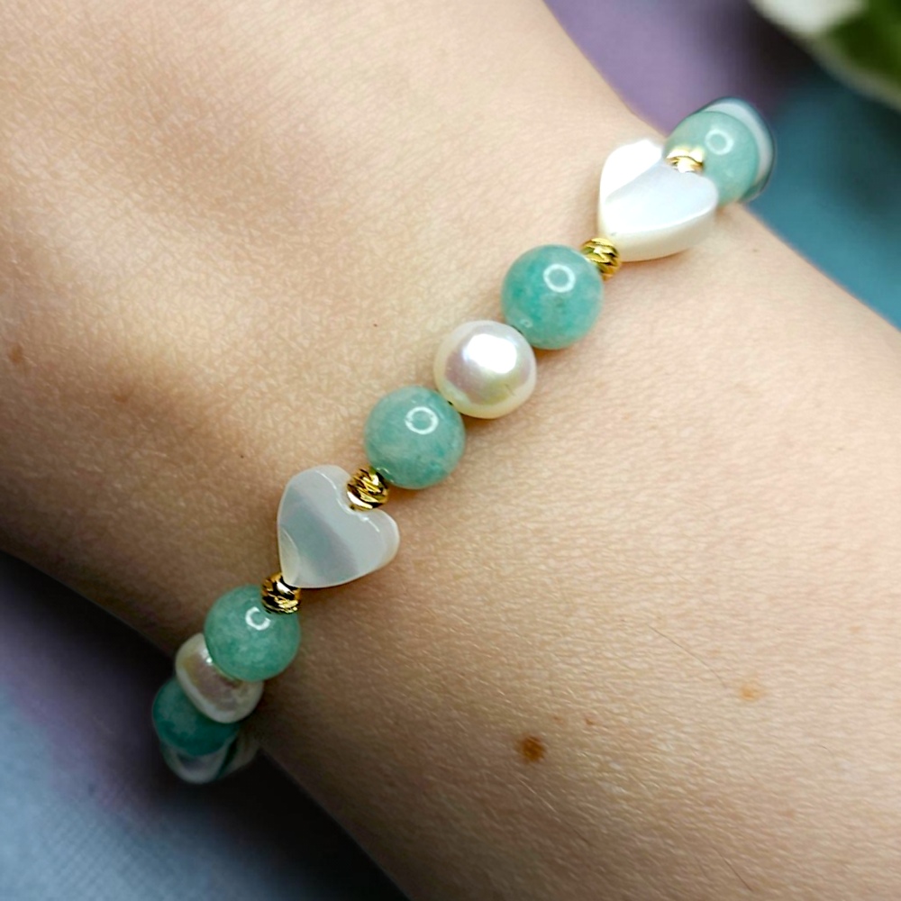 Są momenty, kiedy chcesz poczuć więcej spokoju, lekkości i harmonii w swoim życiu. Potrzebujesz energii, która wycisza, wspiera i przypomina Ci o Twojej wewnętrznej sile. Ta bransoletka z amazonitem i perłami została stworzona właśnie z tą intencją. Połączenie delikatnej energii amazonitu, kobiecej subtelności pereł i symboliki serca tworzy wyjątkowy amulet wspierający spokój, pewność siebie i emocjonalną równowagę.