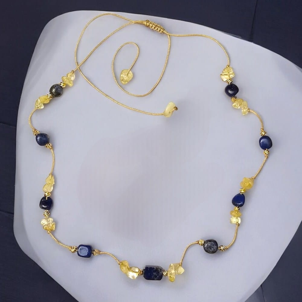 Blask Elegancki naszyjnik z Lapis lazuli i cytrynem regulowana długość na sznurku jubilerskim