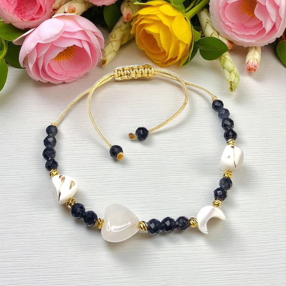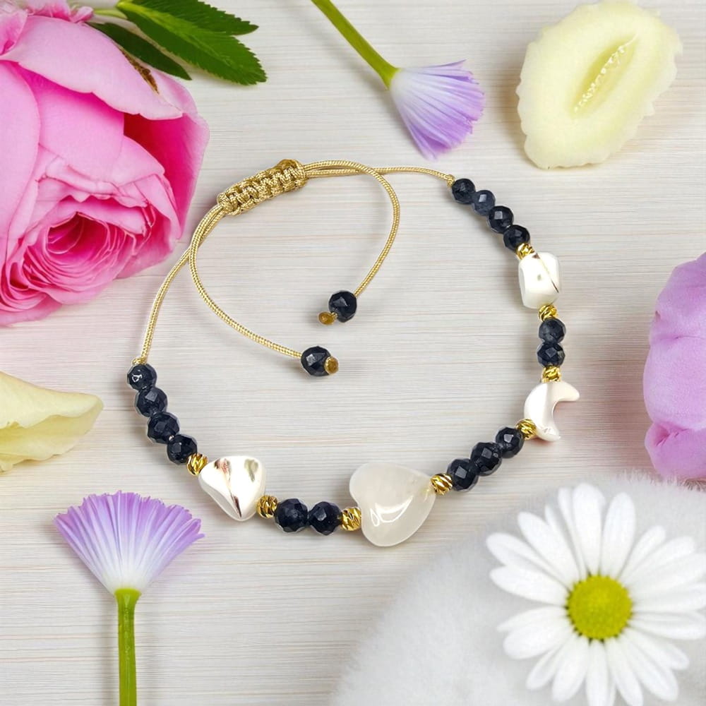 Bransoletka Amulet „Widząca Prawdę” to energetyczny ręcznie wykonany amulet dla osób, które chcą wzmocnić swoją intuicję i chronić się przed fałszywymi intencjami innych. Wykonana z naturalnego szafiru, kryształu górskiego w kształcie serca oraz muszli w kształcie księżyca lunuli i białych koralików z muszli, działa jak duchowy kompas, pomaga dostrzegać to, co ukryte, i czuć więcej niż widać. Szafir wspiera jasność umysłu, uczy wewnętrznego spokoju i chroni przed iluzją. Kryształ górski oczyszcza aurę, wzmacnia działanie intencji i podnosi wibracje. Muszla dodaje delikatności i połączenia z Księżycem, symbolizując kobiecą mądrość i głębokie odczuwanie. Idealna dla empatek, stąpających intuicyjnie przez świat i pragnących ochrony przed energetycznym chaosem. Ręcznie plecione zapięcie, możliwość wyboru koloru sznurka oraz przekładek (stal chirurgiczna kolor srebra lub pozłacane złoto 18k) sprawiają, że każda bransoletka jest unikalna - jak Ty.