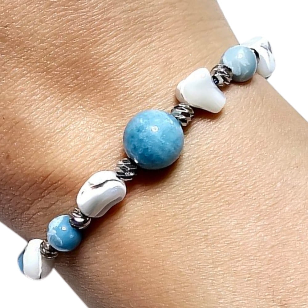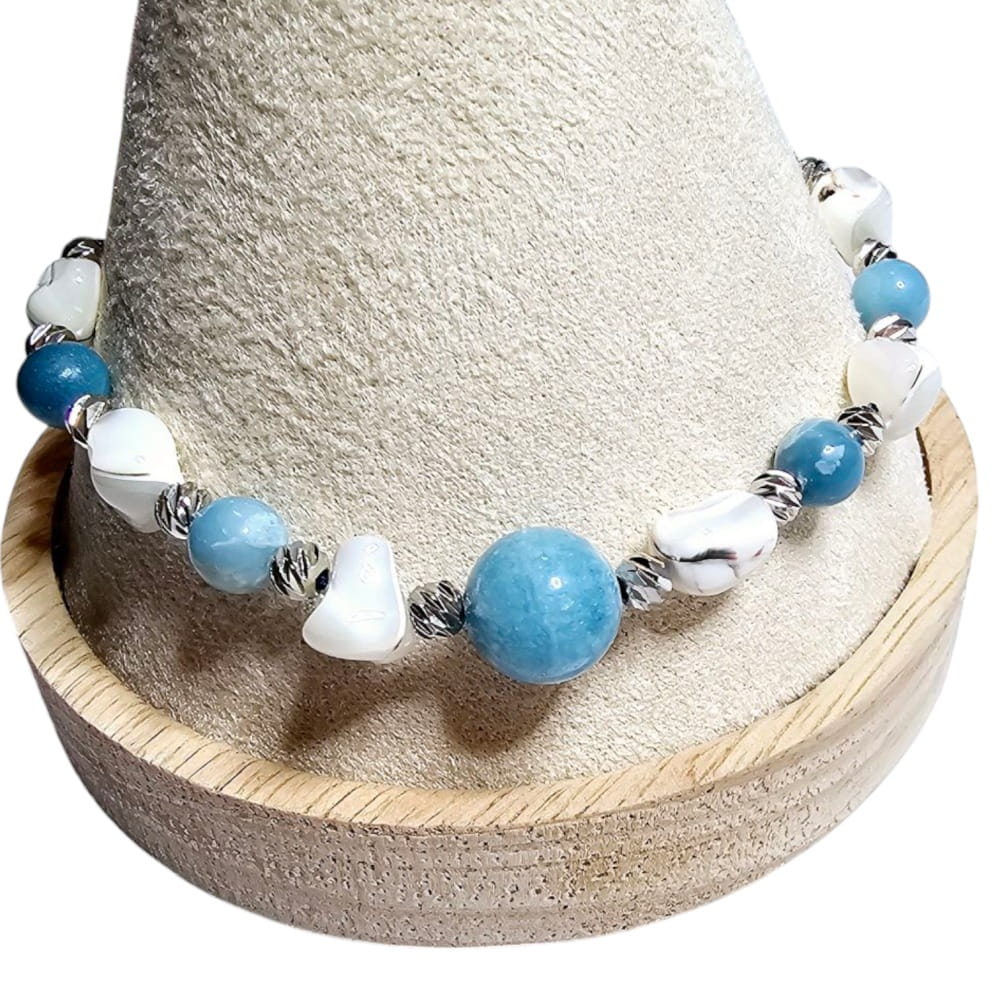 Bransoletka z Larimarem i Masą Perłową to idealny wybór dla osób ceniących spokój, piękno natury i wyjątkowe dodatki. Doskonała jako prezent lub talizman codziennej harmonii.