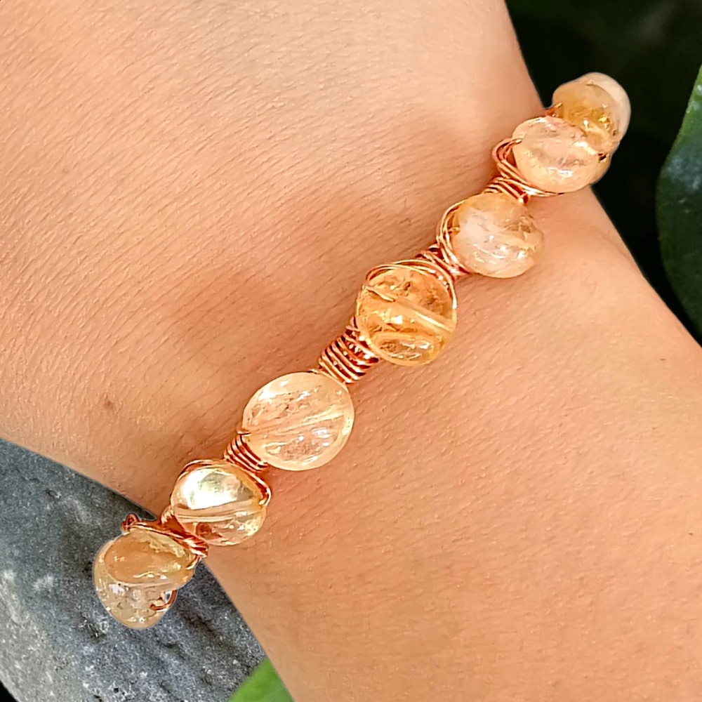 Ta bransoletka miedziana z naturalnym cytrynem została stworzona z intencją obfitości i wewnętrznej siły. Połączenie ciepłej miedzi i słonecznej energii cytrynu tworzy wyjątkową biżuterię, która nie tylko pięknie wygląda, ale może stać się także Twoim osobistym amuletem wspierającym dobrobyt, sukces i pozytywną energię każdego dnia.