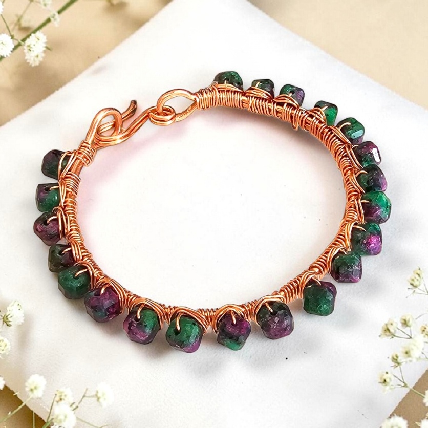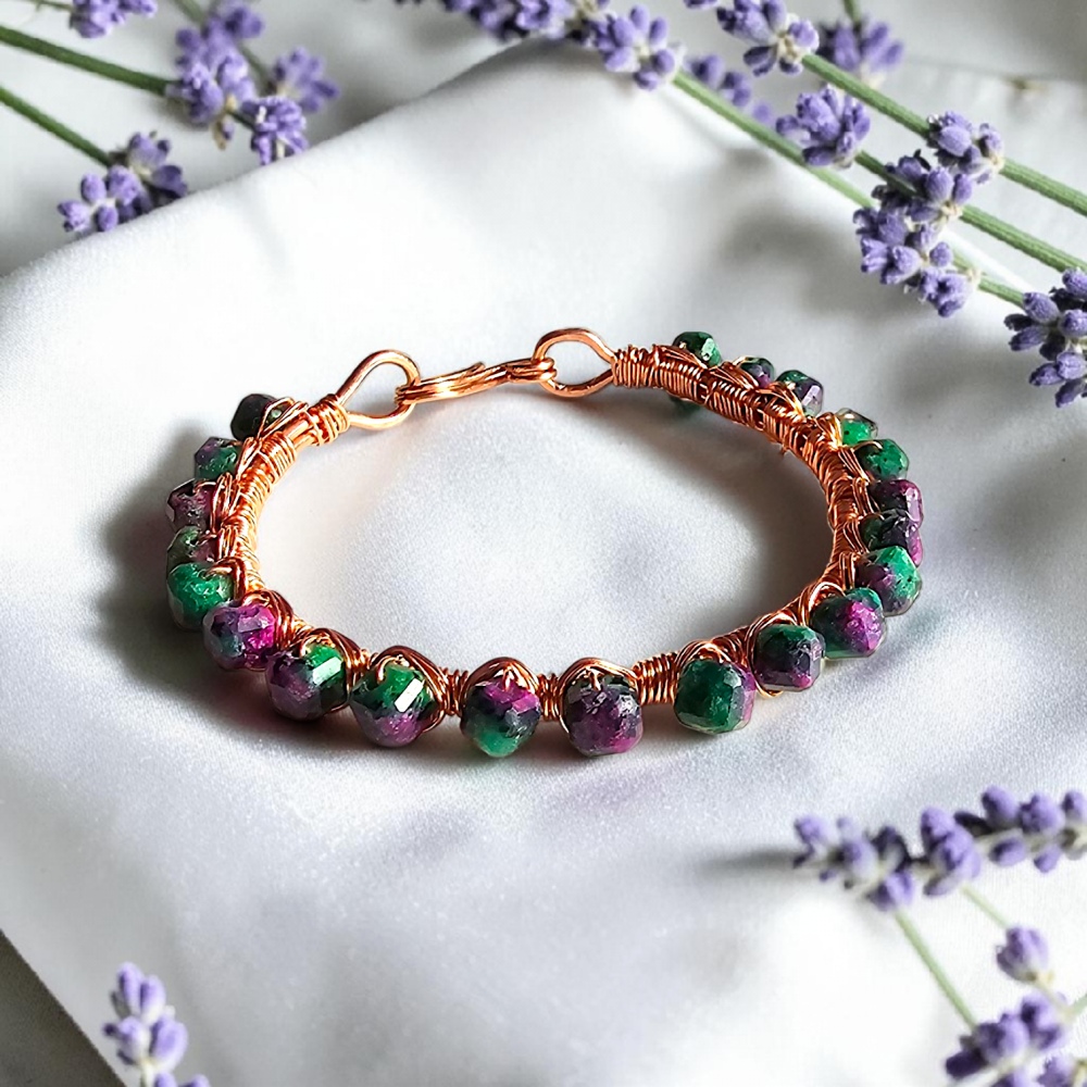 Bransoletka miedziana z zoisytem z rubinem