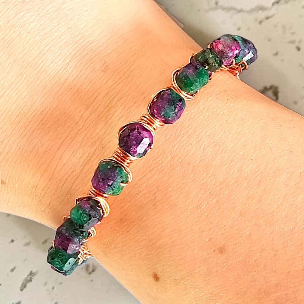 Nazywany również anyolitem, to naturalne połączenie zielonego zoisytu i rubinu, które symbolicznie łączy energię serca z siłą działania. Zoisyt wspiera harmonię emocjonalną, spokój i wewnętrzną równowagę, natomiast rubin kojarzony jest z odwagą, pasją i życiową energią.