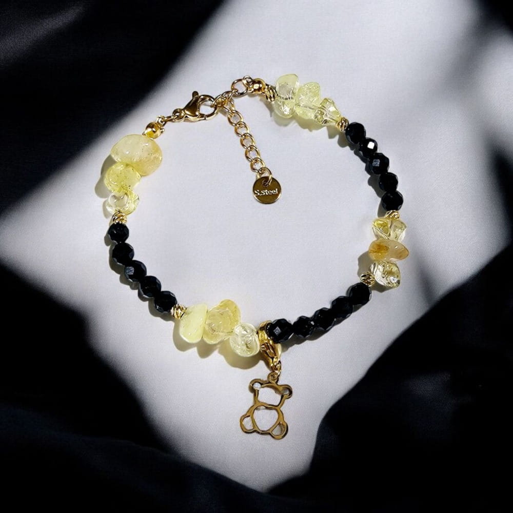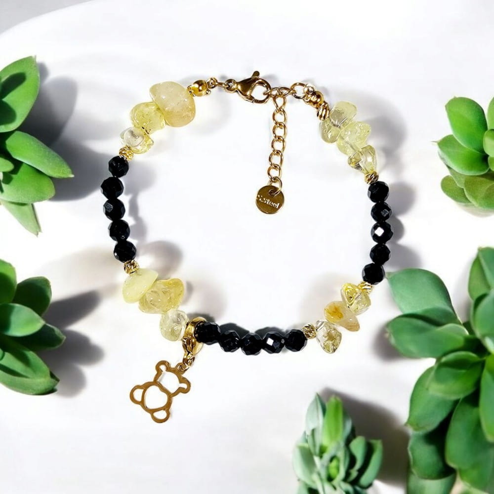 Bransoletka z czarnym turmalinem i cytrynem to doskonały wybór dla osób, które chcą czerpać siłę z pozytywnej energii cytrynu i ochronnej mocy turmalinu. Idealny talizman na co dzień lub jako wyjątkowy prezent.