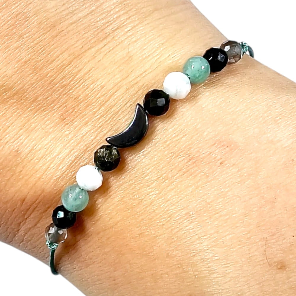 Bransoletka znak zodiaku Koziorożec Kamień Księżycowy Obsydian Turmalin bransoletka z kamieni naturalnych