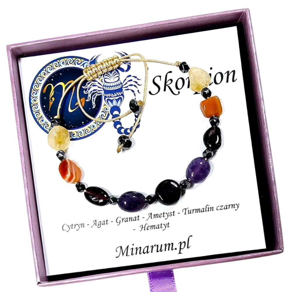 Bransoletka znak zodiaku Skorpion Turmalin Granat Cytryn bransoletka z kamieni naturalnych