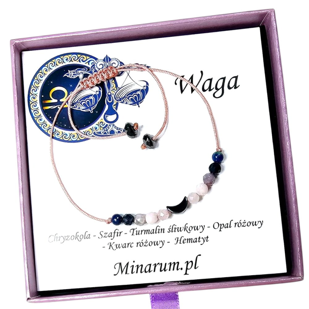 Bransoletka znak zodiaku Waga Chryzokola Szafir Opal bransoletka z kamieni naturalnych