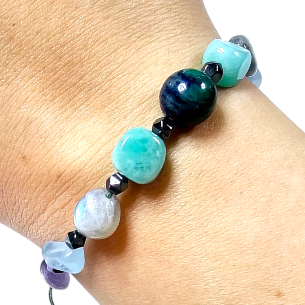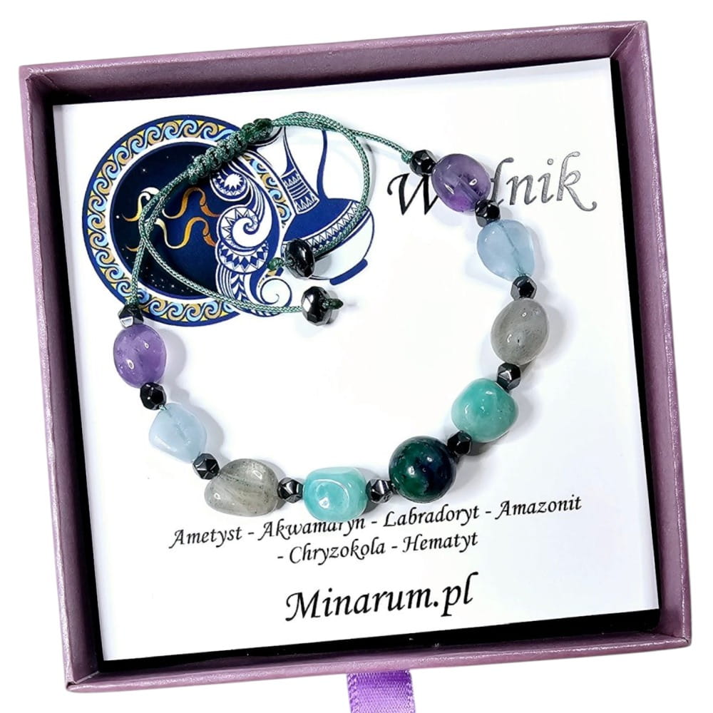Bransoletka znak zodiaku Wodnik Amazonit Labradoryt Akwamaryn bransoletka z kamieni naturalnych