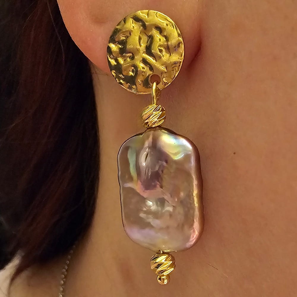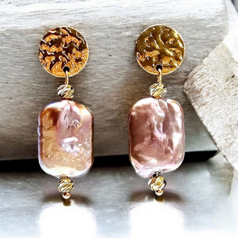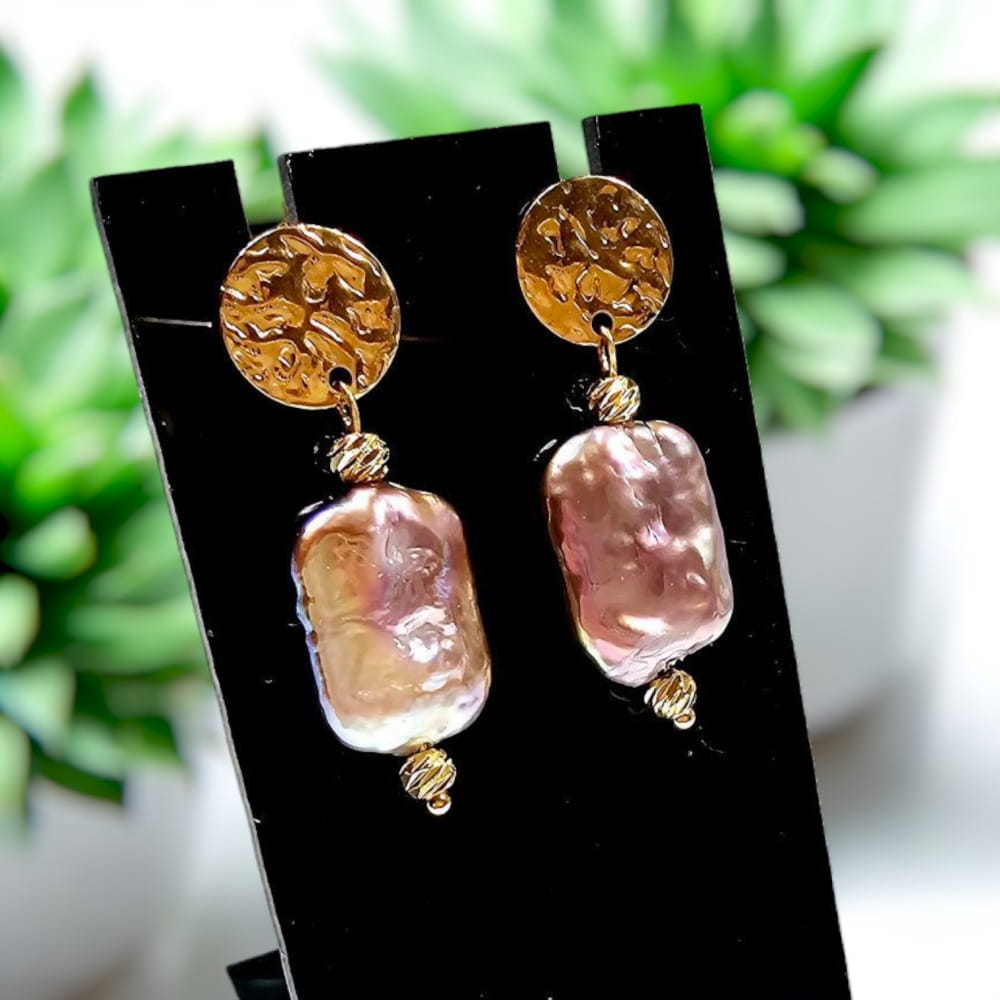Wiszące kolczyki z perłami barokowymi w kolorze brudnego różu