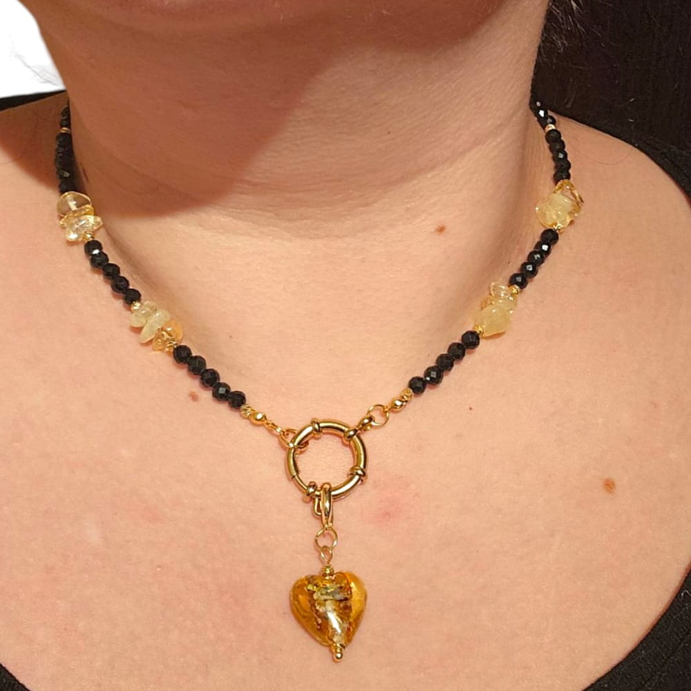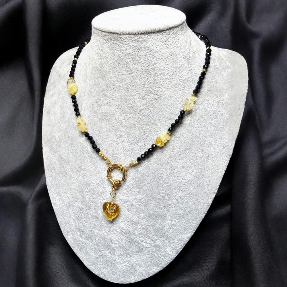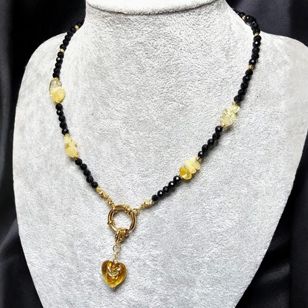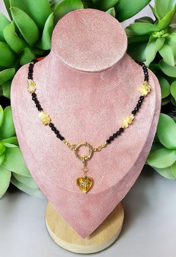 Moc Turmalinu Choker Naszyjnik z czarnym Turmalinem i Cytrynem Sukces obfitość ochrona