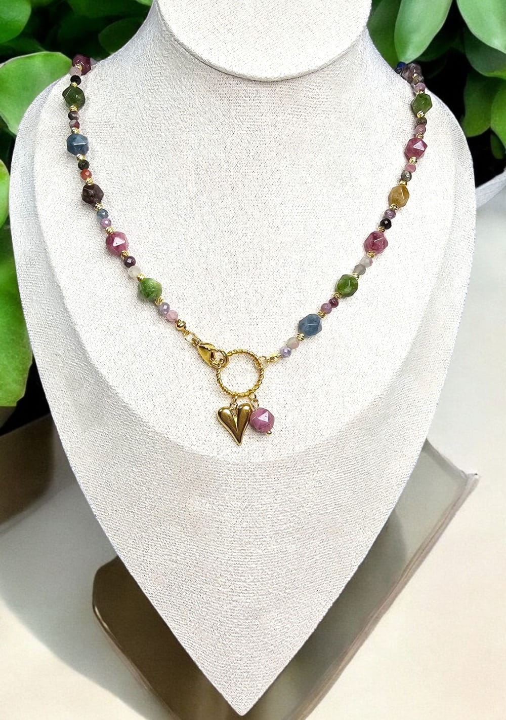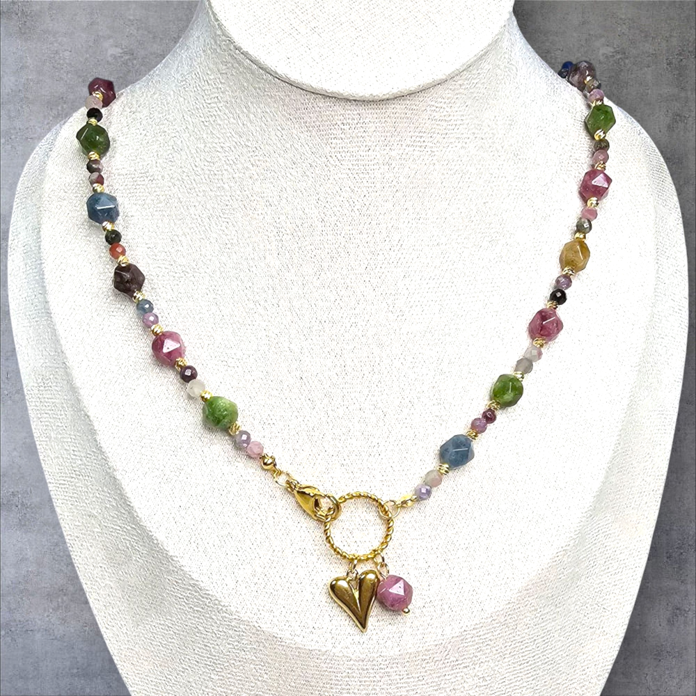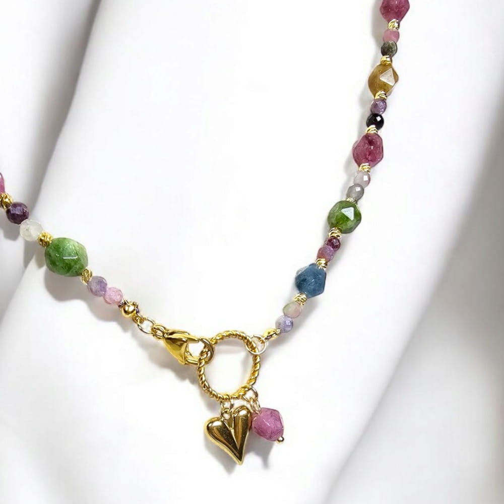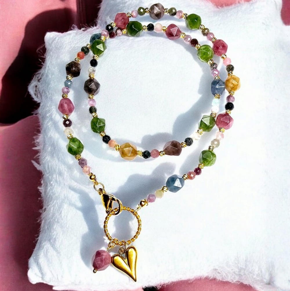 Feria Barw - Naszyjnik z kolorowych turmalinów i zawieszką w kształcie serduszka.