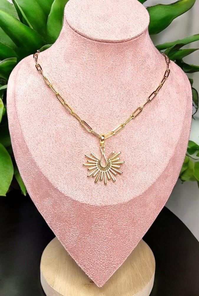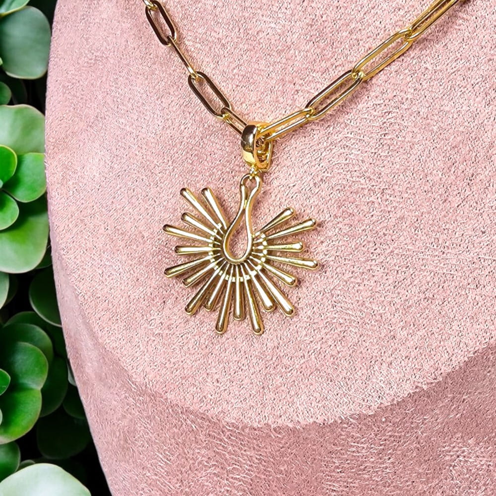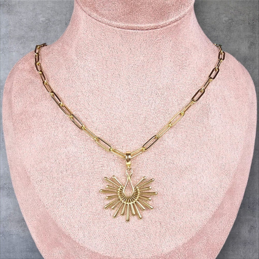 Pozłacany naszyjnik z zawieszką w kształcie pawiego ogona to elegancki dodatek, który doda blasku każdej stylizacji. Wykonany ze stali nierdzewnej, dostępny jest w wersji z 18-karatowym złoceniem, co zapewnia stylowy wygląd. Odpinana zawieszka umożliwia dowolne personalizowanie naszyjnika, czyniąc go idealnym prezentem na różne okazje. Ten wyjątkowy naszyjnik stanie się nieodłączną częścią Twojej kolekcji biżuterii, podkreślając Twój wyjątkowy gust. Możliwość wyboru innej zawieszki lub dobrania kolejnych na zmianę. Dzięki możliwości zmiany zawieszek uzyskujesz wiele efektów na jednym naszyjniku.