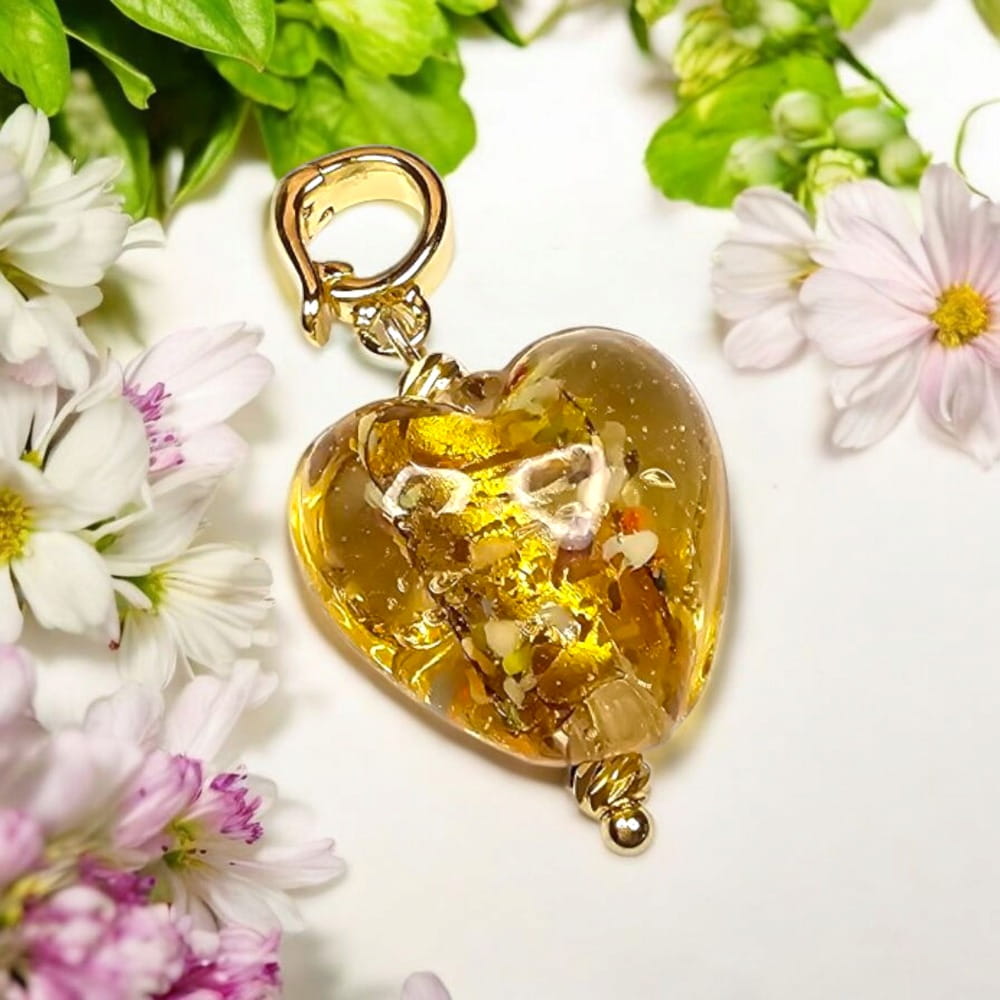 - 5. Serce szklane - szło artystyczne plus pozłacana przekładka 18K stal nierdzewna, wymiar 23/16mm