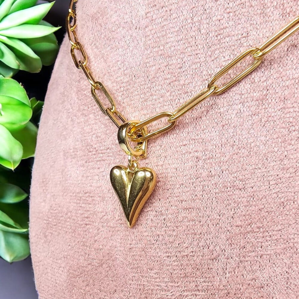 Naszyjnik z odpinaną zawieszką serce stal pozłacana