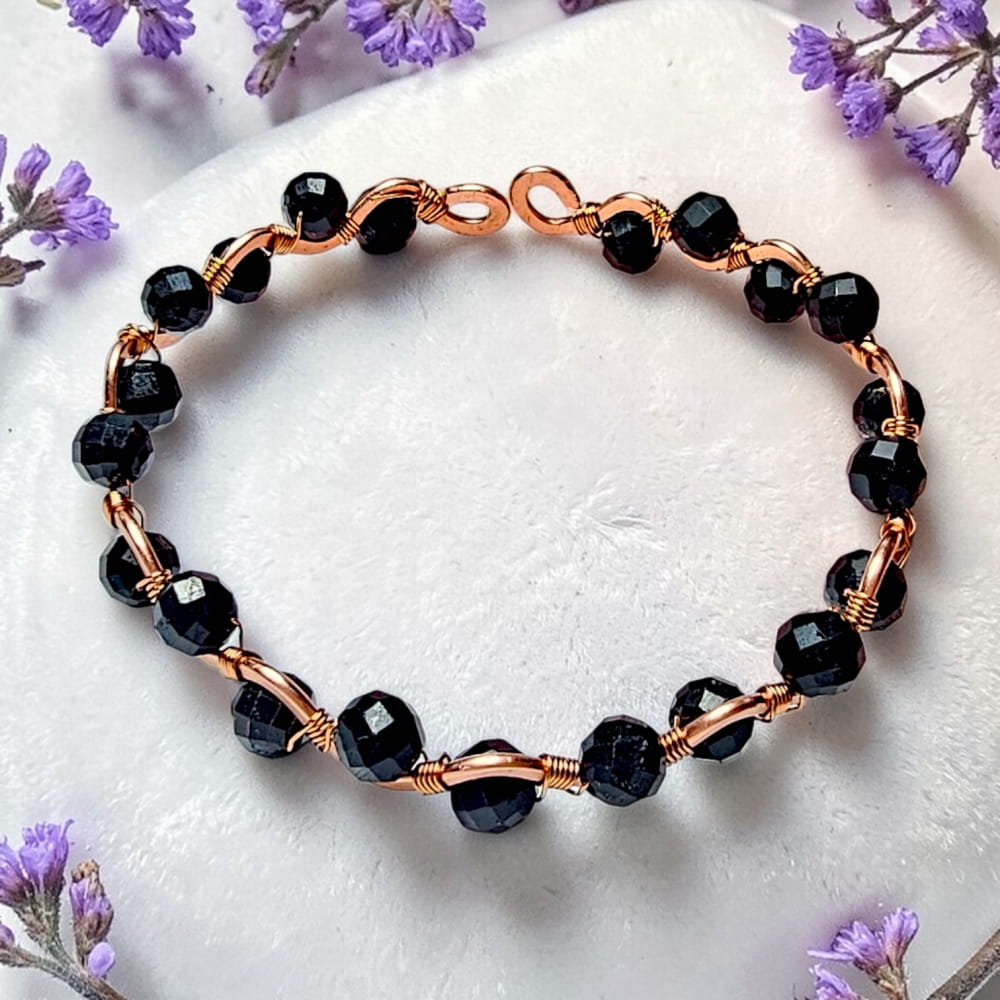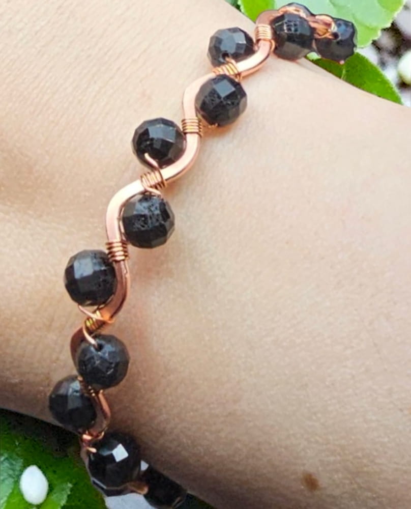 Bransoletka z czystej miedzi i czarnego turmalinu