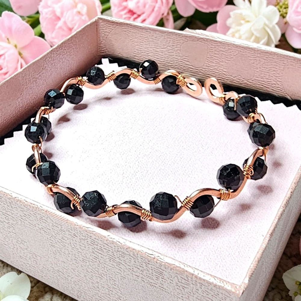 Niezłomna bransoletka z czystej miedzi i czarnego turmalinu na ochronę energetyczną