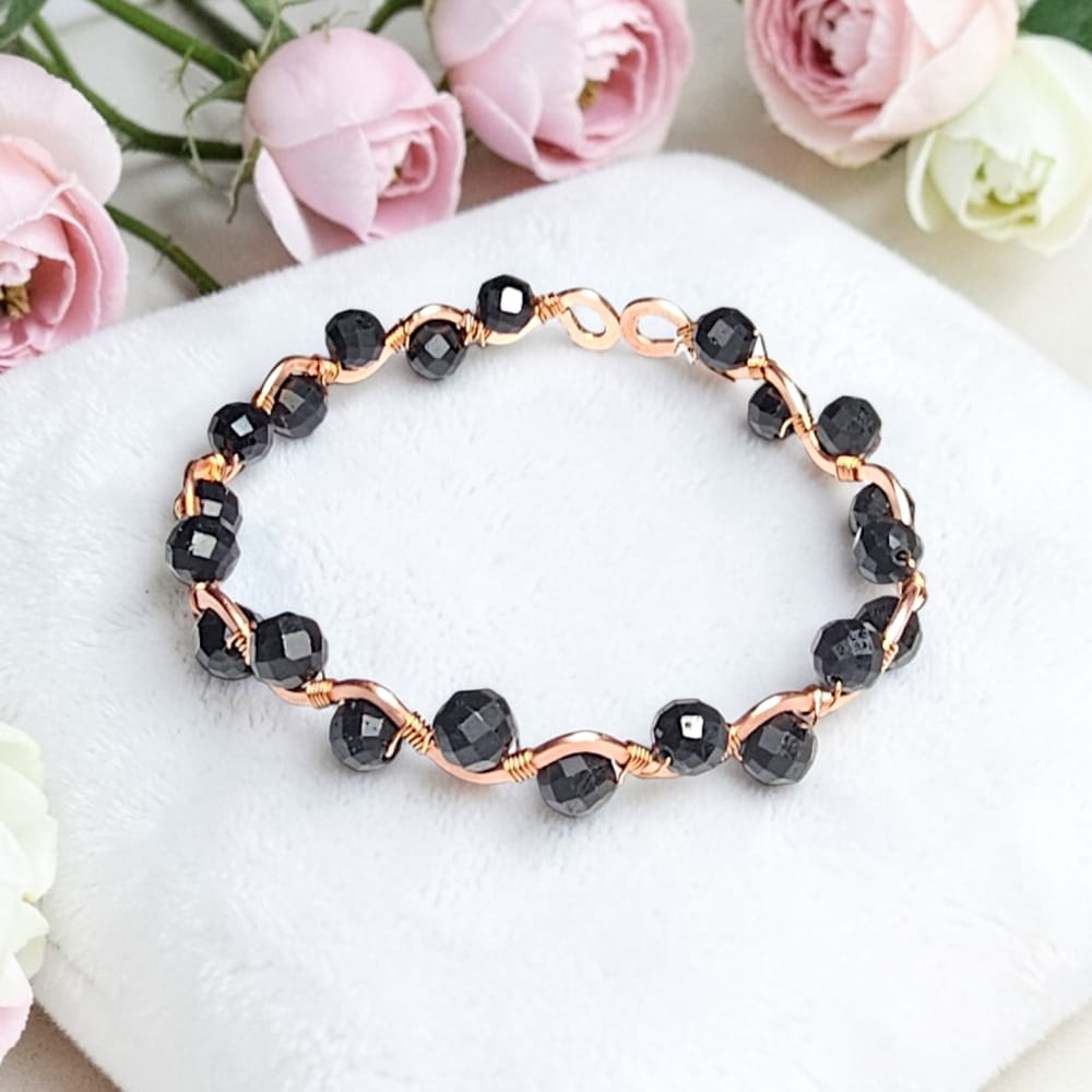 (możliwość stworzenia bransoletki na inny wymiar, po wcześniejszym uzgodnieniu). - Rodzaj i wielkość kamieni - Czarny turmalin fasetowany 6mm.