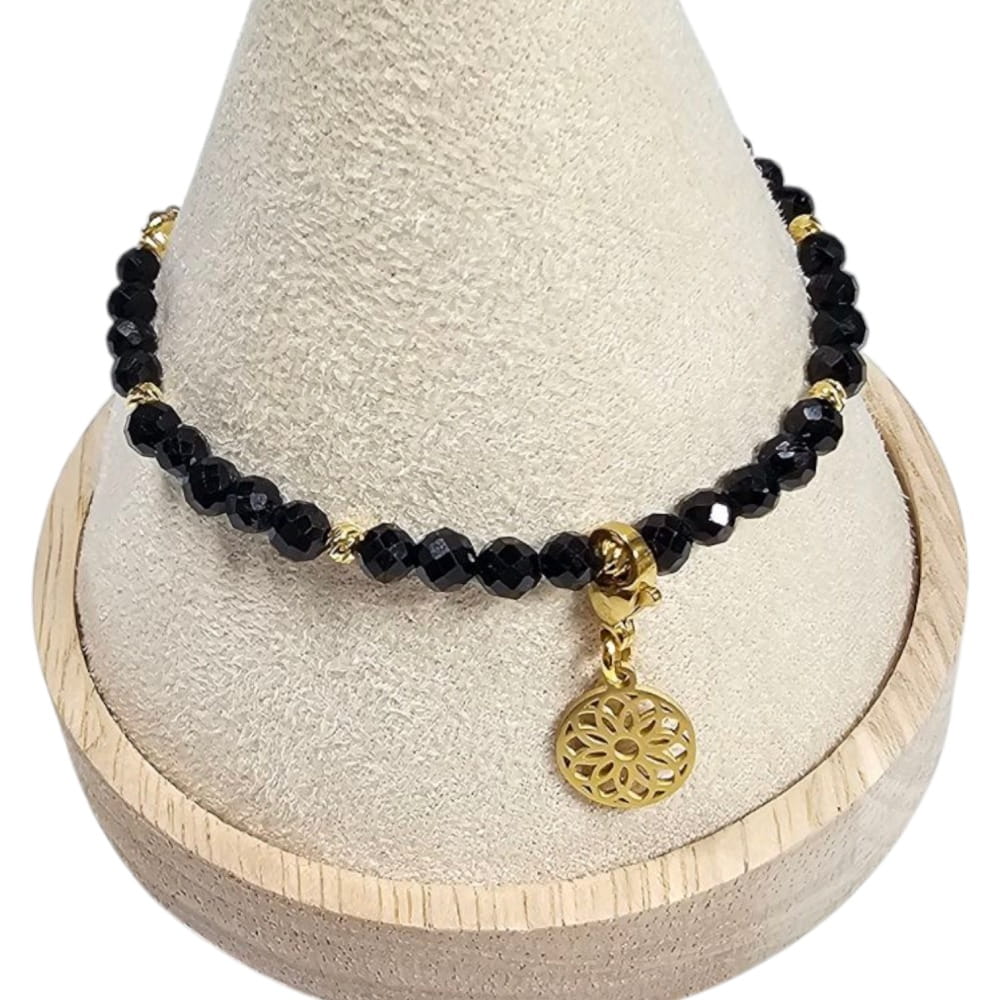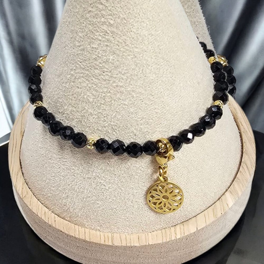 Ochronna Aura - Bransoletka z Czarnym Turmalinem i odpinaną zawieszką ze stali nierdzewnej.
