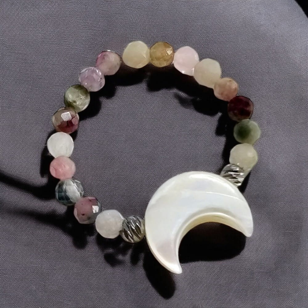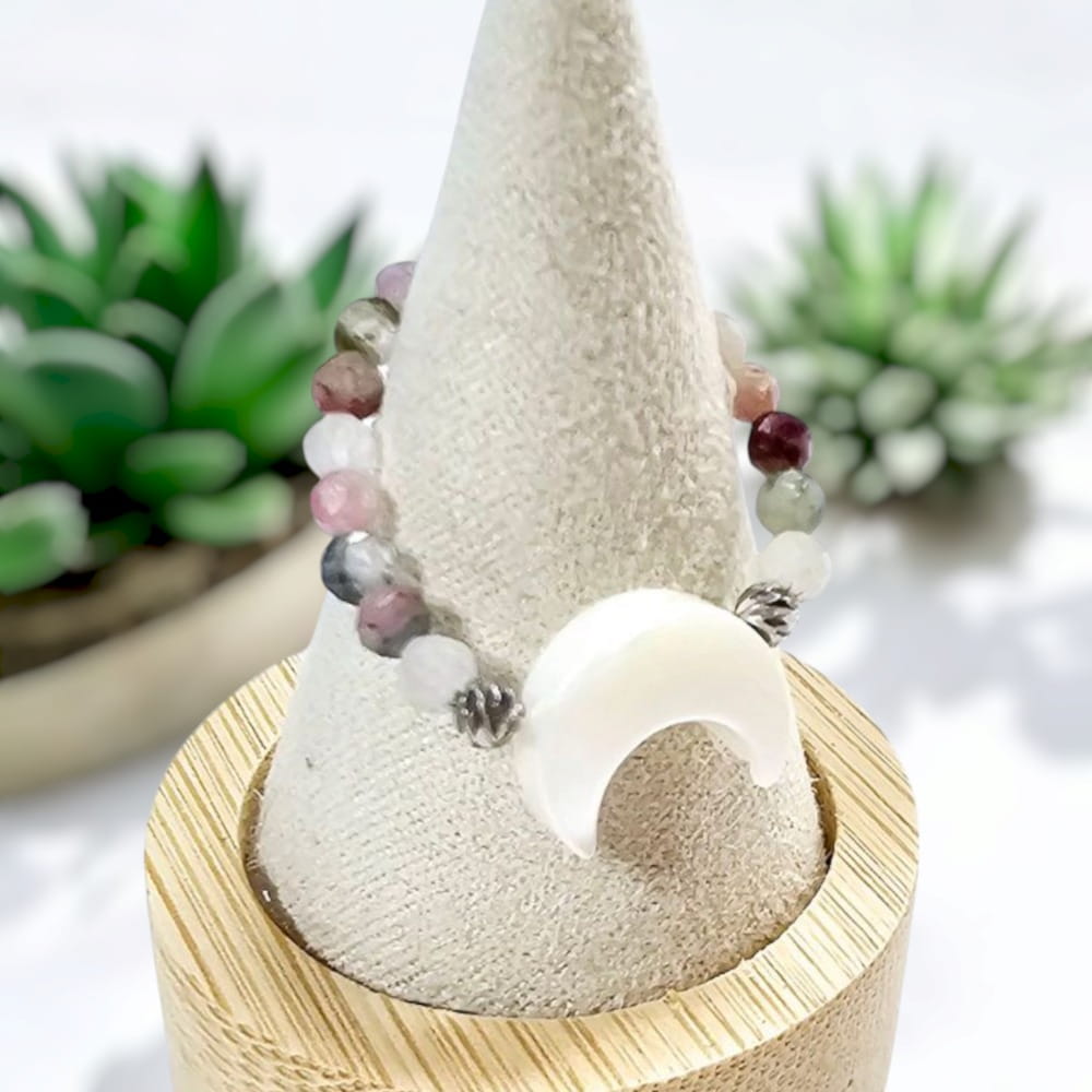 Pierścionek z turmalinów z księżycem z muszli pierścionek na elastycznej gumce