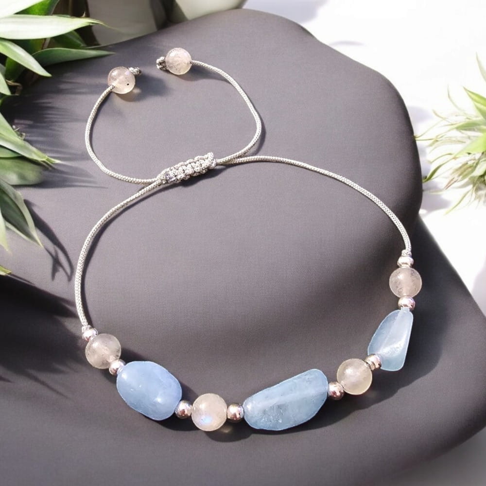 Światło Księżyca - bransoletka z Akwamarynem i Kamieniem Księżycowym
