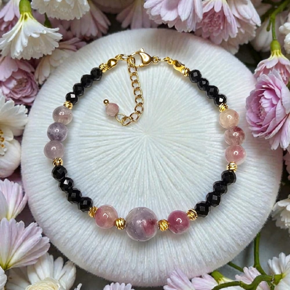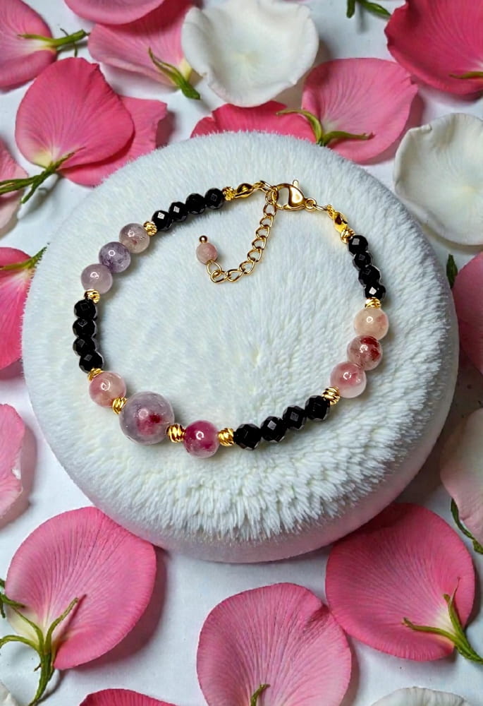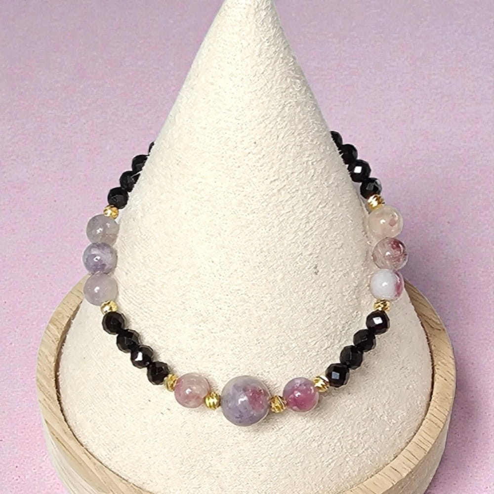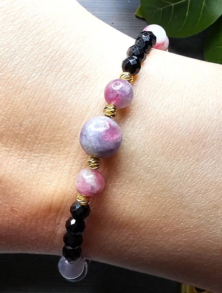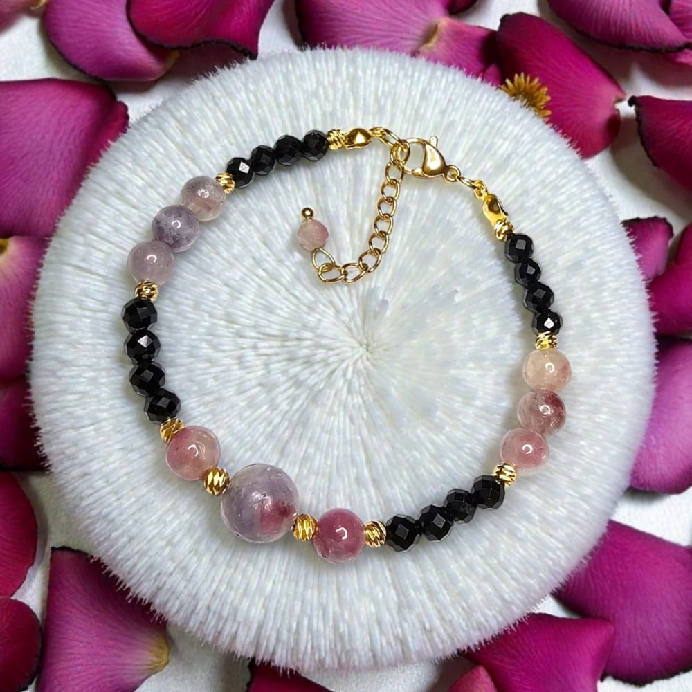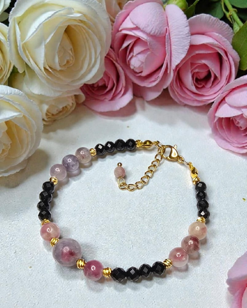 Wojowniczka bransoletka na ochronę i miłość własną rubelit różowy turmalin czarny turmalin