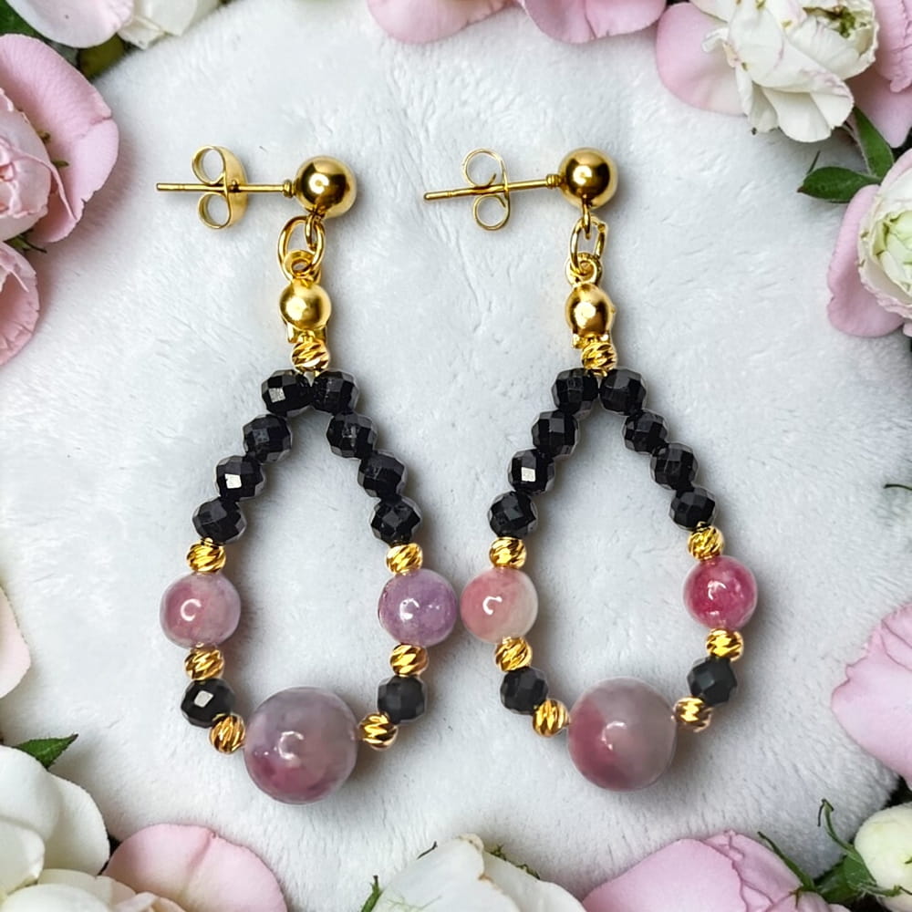 Wojowniczka kolczyki z czarnego turmalinu i różowego turmalinu na ochronę i miłość własną